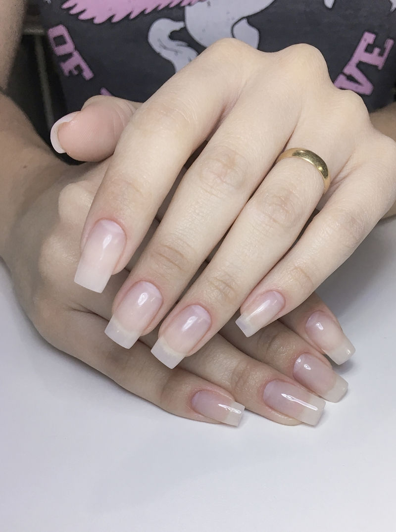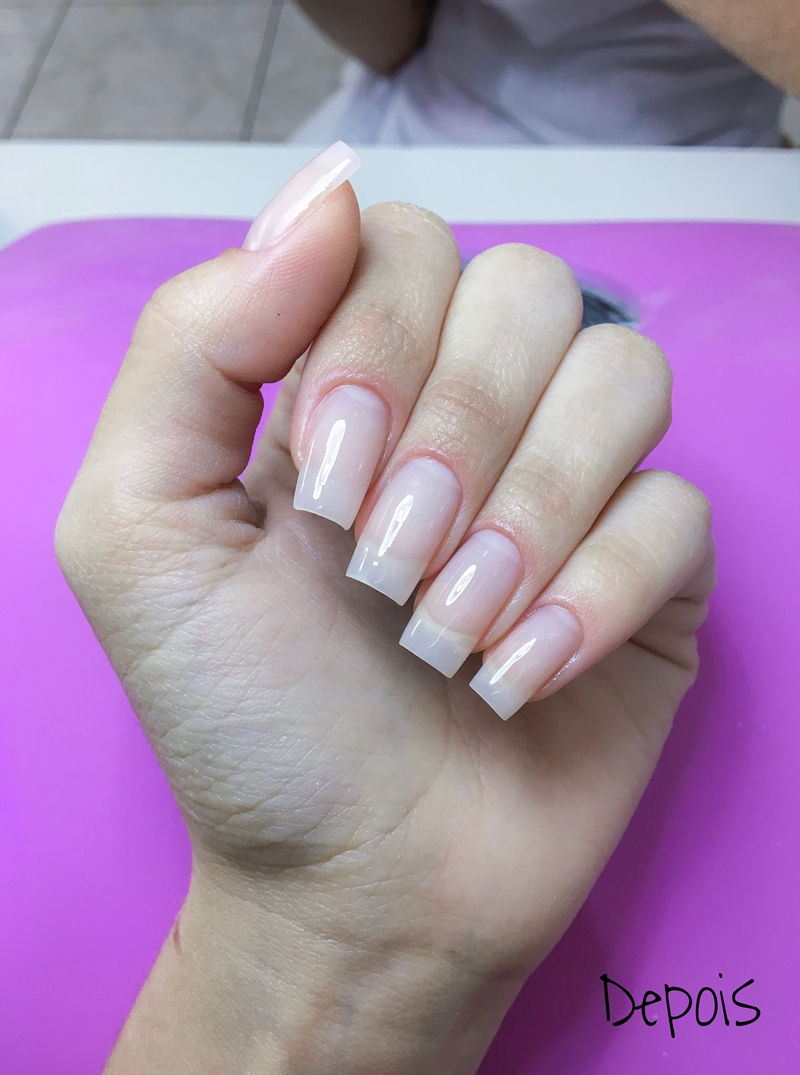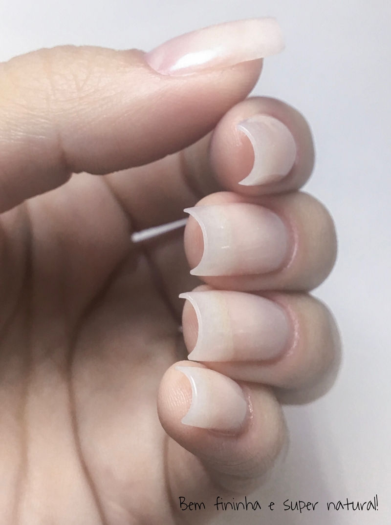 Demorou cerca de quatro horas pra ficar pronto, mas minha manicure deixou minhas unhas PERFEITAS! O acabamento ficou fininho e bem natural, nem parece que fiz alongamento!
